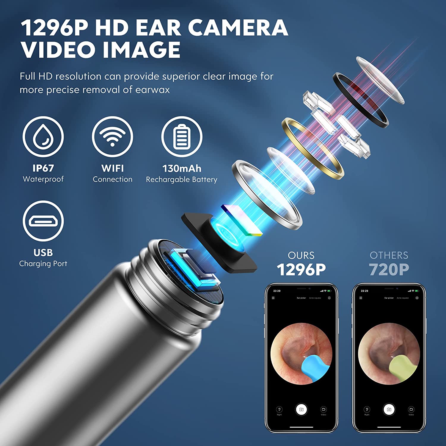 • 【Rechargeable & IP67 Waterproof】This ear wax removal tool is rechargeable and environmentally friendly, allowing you to charge it anytime. The built-in 130mAh battery provides up to 45 minutes of continuous usage. Its IP67 Waterproof Lens allows easy cleaning by washing the camera, ear spoon, and LED lights with water or wiping them with alcohol cotton after use. It’s a must-have tool for maintaining family health and an excellent gift choice for elders, family, and friends.
